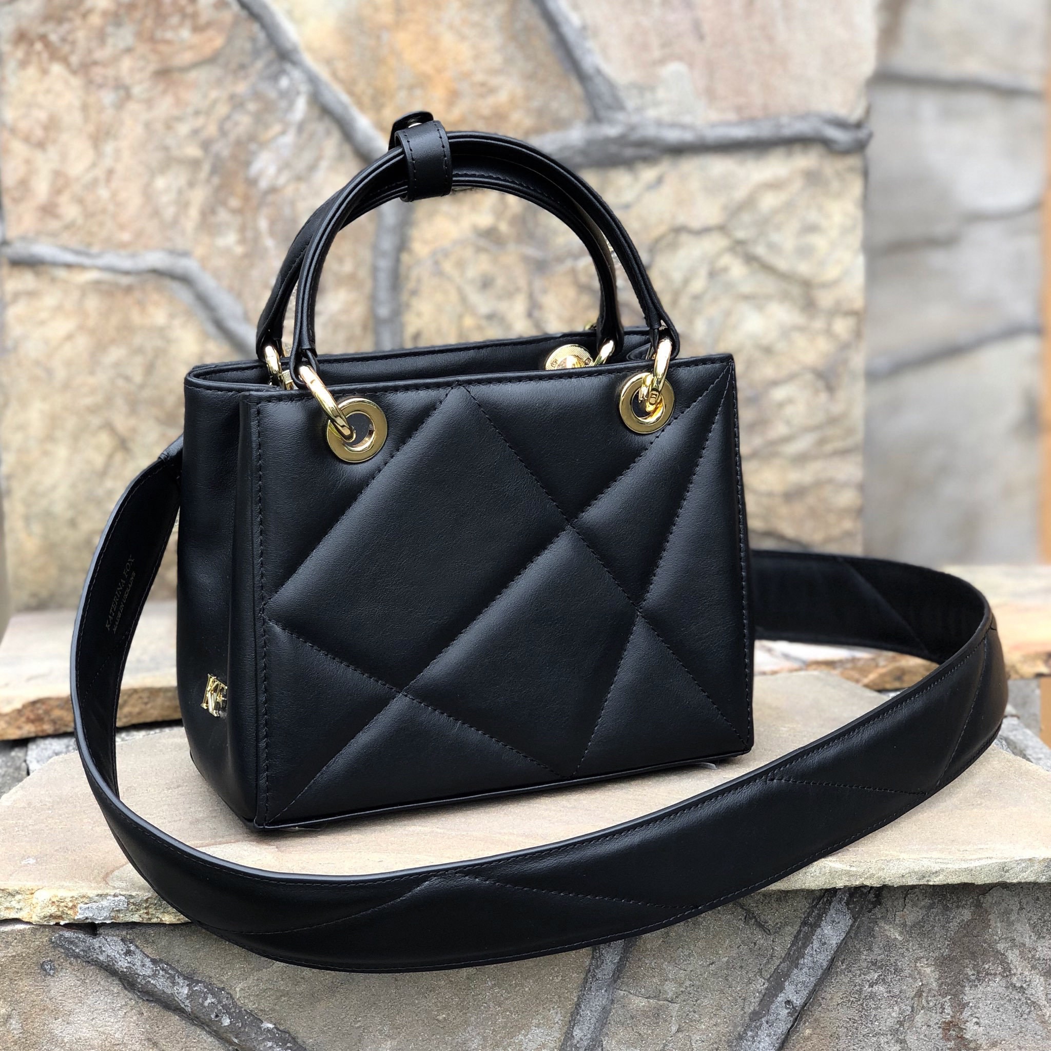 Leather Top Handle Bag, Black Leather Handbag Top Handle, Women's Leather Bag KF-852